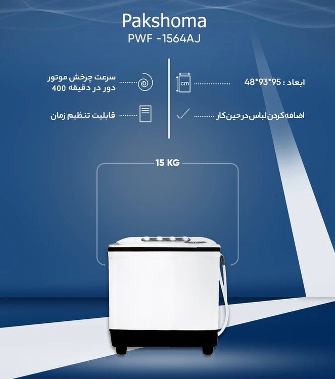 ماشین لباسشویی پاکشوما مدل PWF -1564AJ ظرفیت 15.5 کیلوگرم