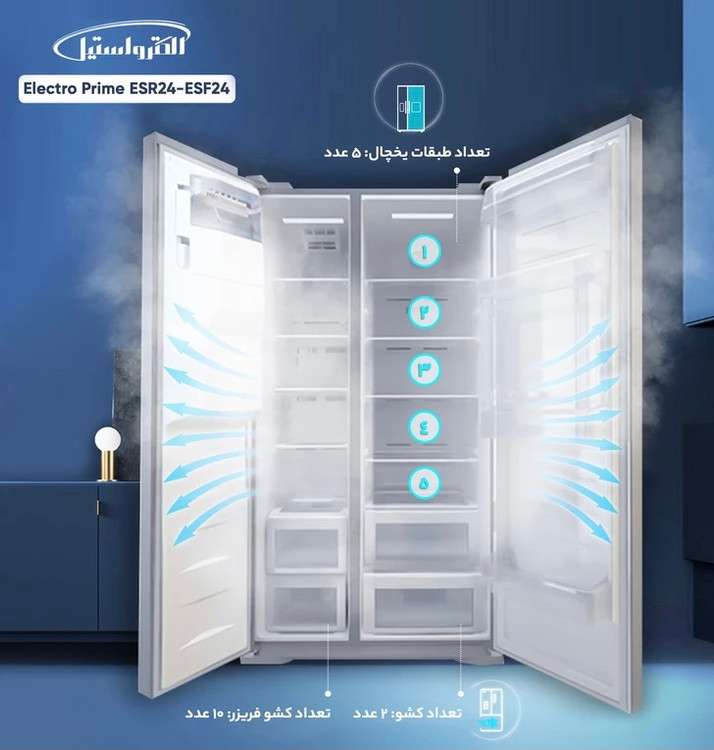 یخچال و فریزر دوقلو 40 فوت الکترواستیل مدل Electro Prime ESR24-ESF24